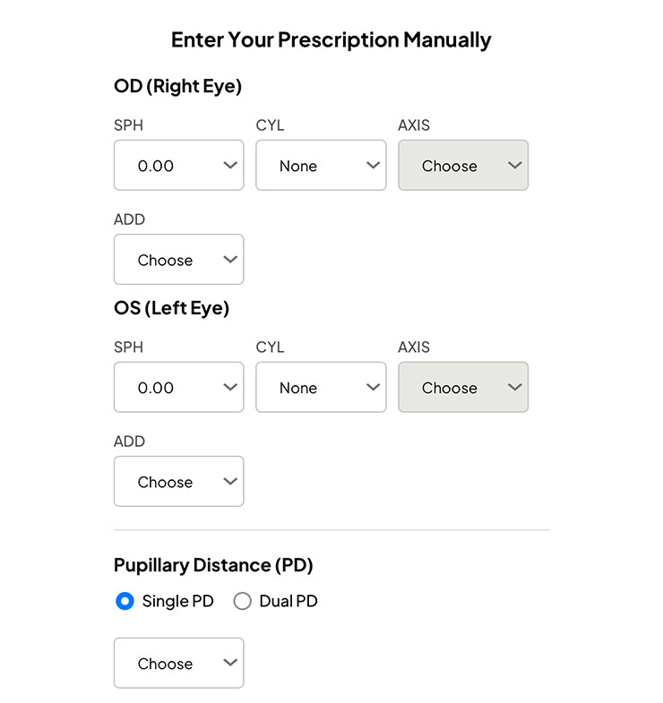 Grab a copy of your prescription and fill in the spaces provided. If you’ve shopped with us before, you can access your prescription within your order history.
